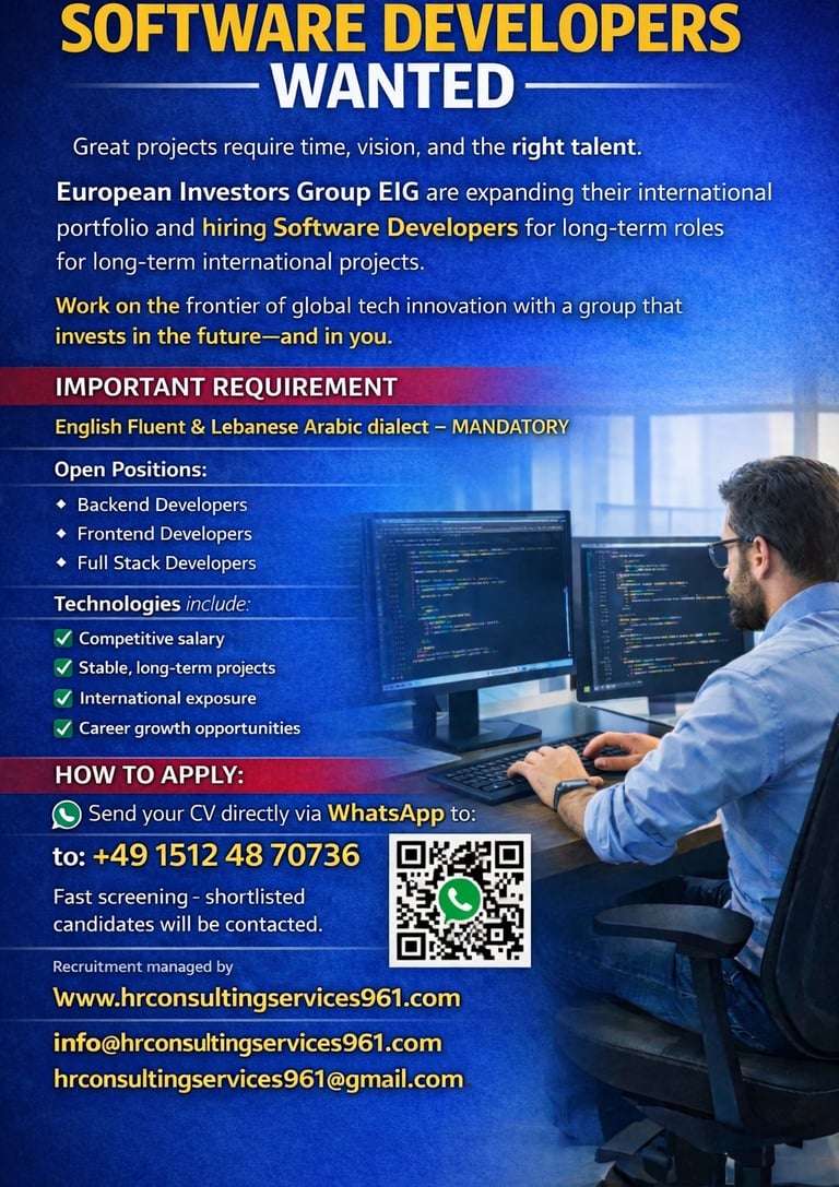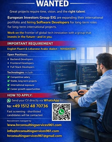 📧 Apply now: Send your CV: info@hrconsultingservices961.com